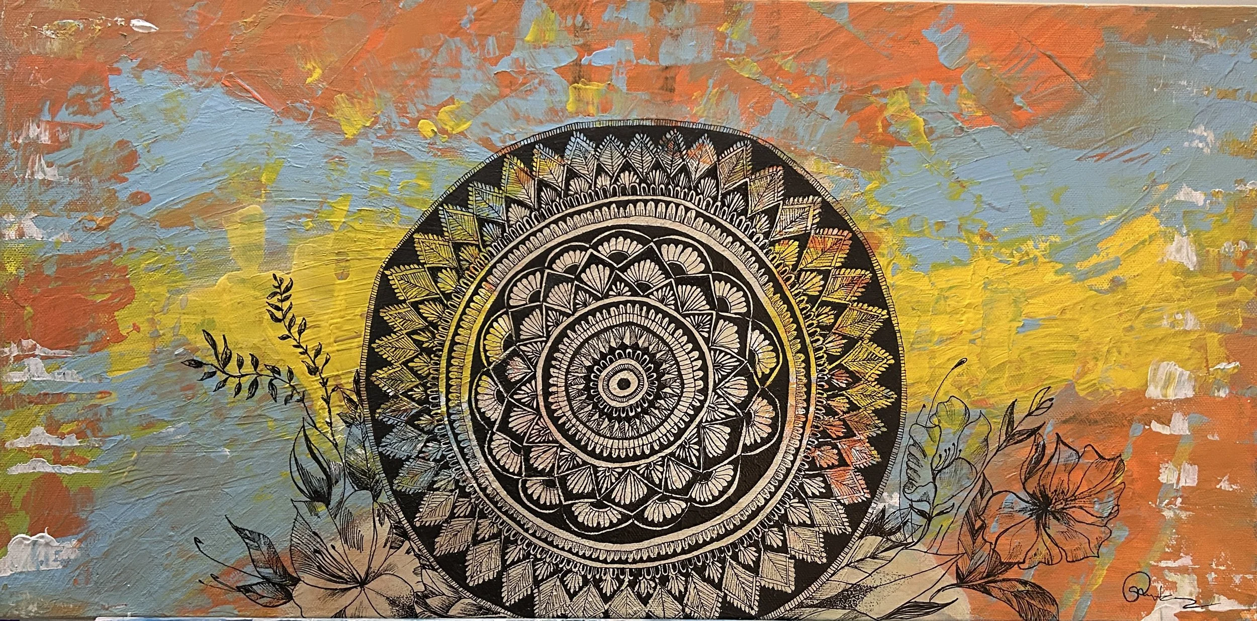 A collection of paintings showcased @ Bluebird Sky Yoga’s Art Gallery.